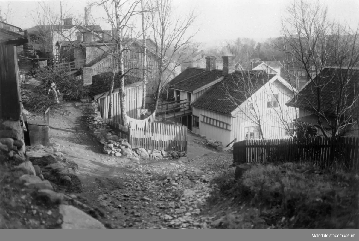 Roten G i Trädgården, 1920-tal. Här går numera trappvägen (Lelle-Börjes trappor) mellan Trädgårdsgatan och Kvarnbyvallen upp. Längst upp till vänster ligger Roten G13, Eric Ottenstams barndomshem.