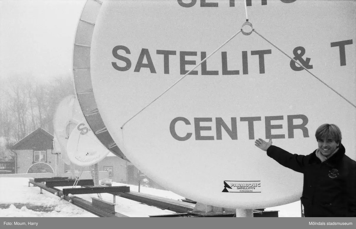 Seth Larsson på taket till det nybyggda Seth's Antenn och TV-service AB i Lindome, år 1985.