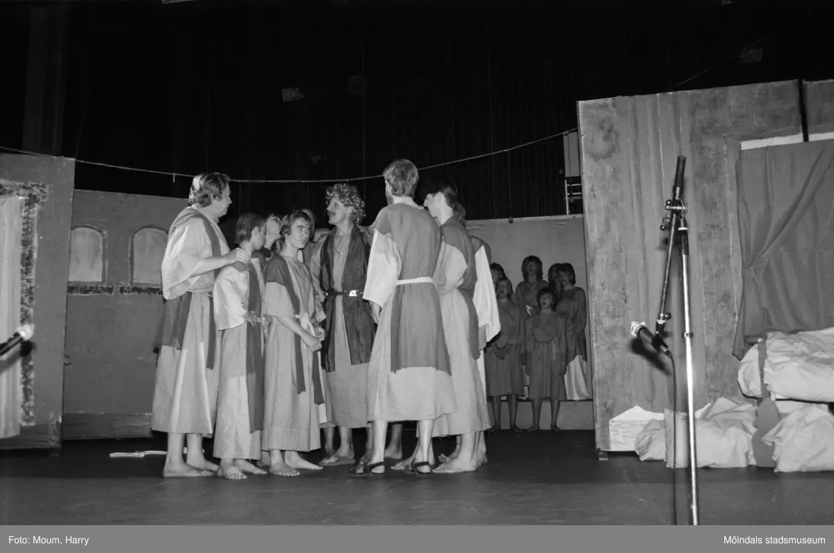 Musikalen Joseph på Ekenskolan i Kållered, år 1984. "Josef i kretsen av sina bröder."