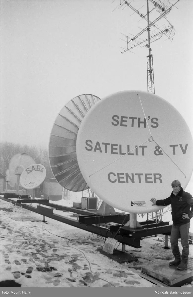 Seth Larsson på taket till det nybyggda Seth's Antenn och TV-service AB i Lindome, år 1985.