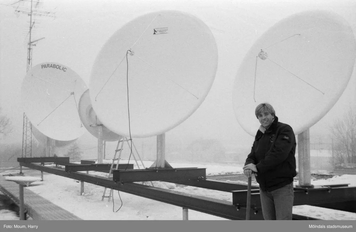 Seth Larsson på taket till det nybyggda Seth's Antenn och TV-service AB i Lindome, år 1985.