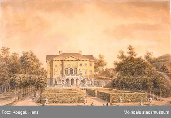 Motiv akvarellmålning av Gunnebo slott ca:1790-1827. av J. F. Weinberg.