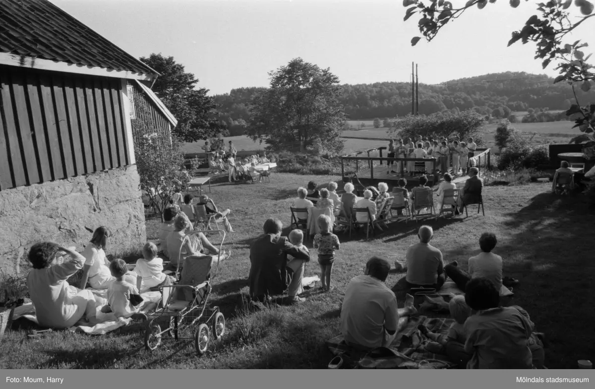 Sommarkväll på hembygdsgården Långåker i Kållered, år 1985. "Nu har sommarkvällarna på Långåker börjat."