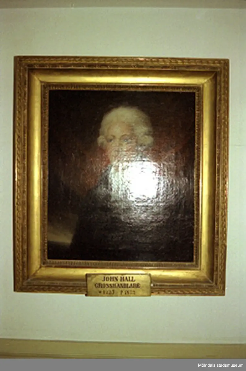 Utställning på Gunnebo slott, okänt årtal. Avfotograferad porträttmålning av Grosshandlare John Hall (1735 - 1802). John Halls eller Carlsbergs teckningar.