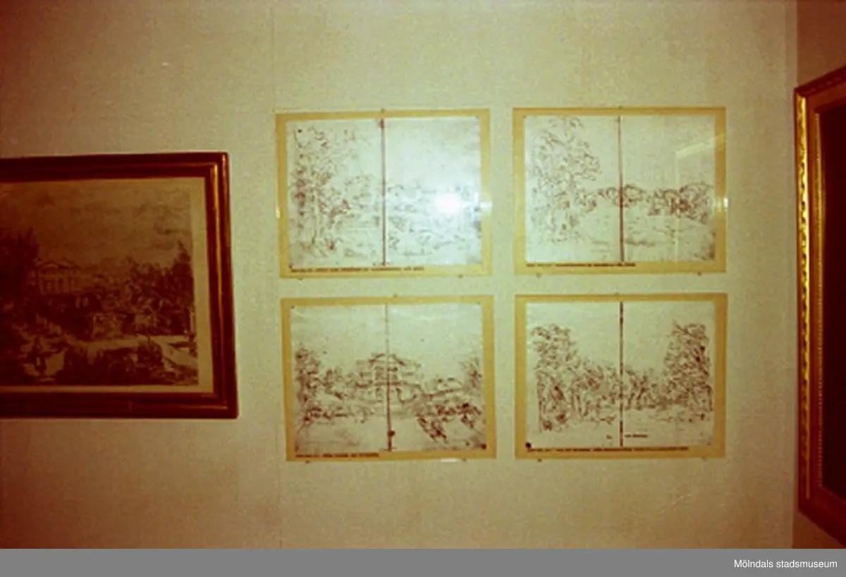Utställning på Gunnebo slott, okänt årtal. Bildkonst av John Halls eller Carlsbergs teckningar.