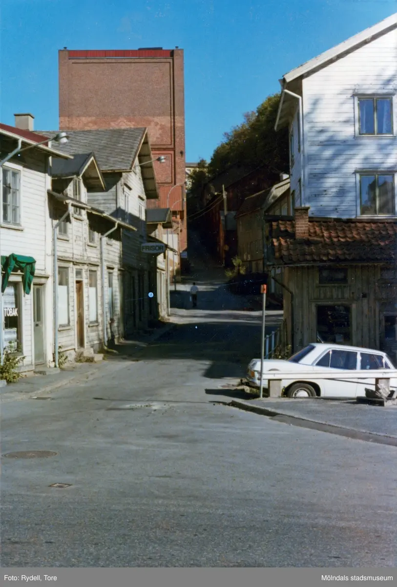 Bebyggelse vid Götaforsliden i Mölndals Kvarnby på 1970-talet. På vänstra sidan gatan ses Götaforsliden 1-5 och Stora Götafors, på den högra sidan nr 4 och nr 6.