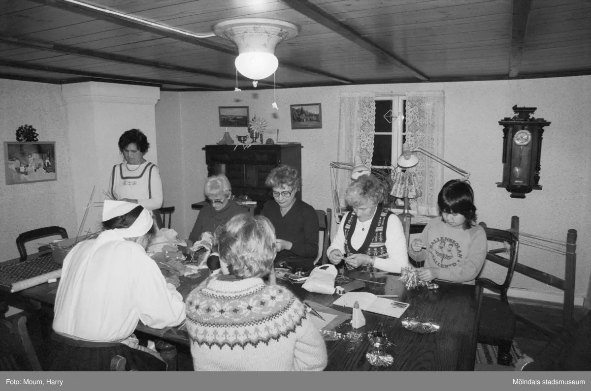 Titel: Julpyntskväll på Kållereds Hembygdsgilles gård i Långåker, år 1983. För mer information om bilden se under tilläggsinformation.