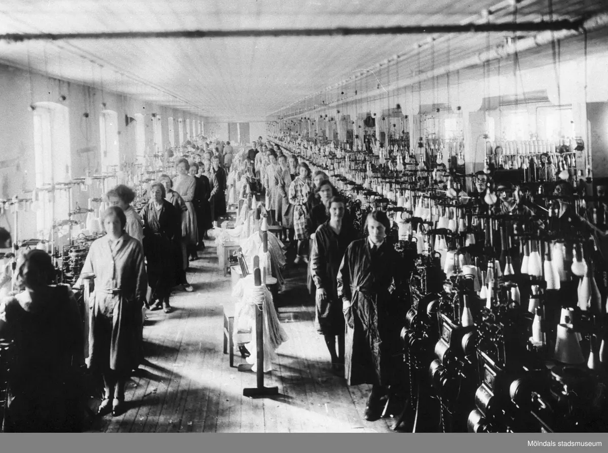 Kvinnlig personal i Viktor Samuelsons fabrik "Strumpan", omkring 1940. Relaterade motiv: 2004_0163 - 0184.