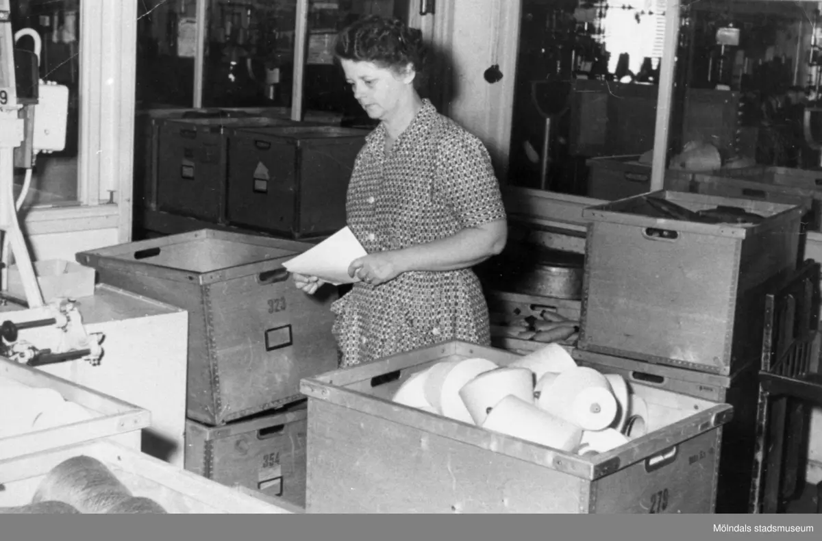 Viktor Samuelsons fabrik "Strumpan" i Mölndals Kvarnby på 1960-talet. Elin Gustafsson inväger garn.