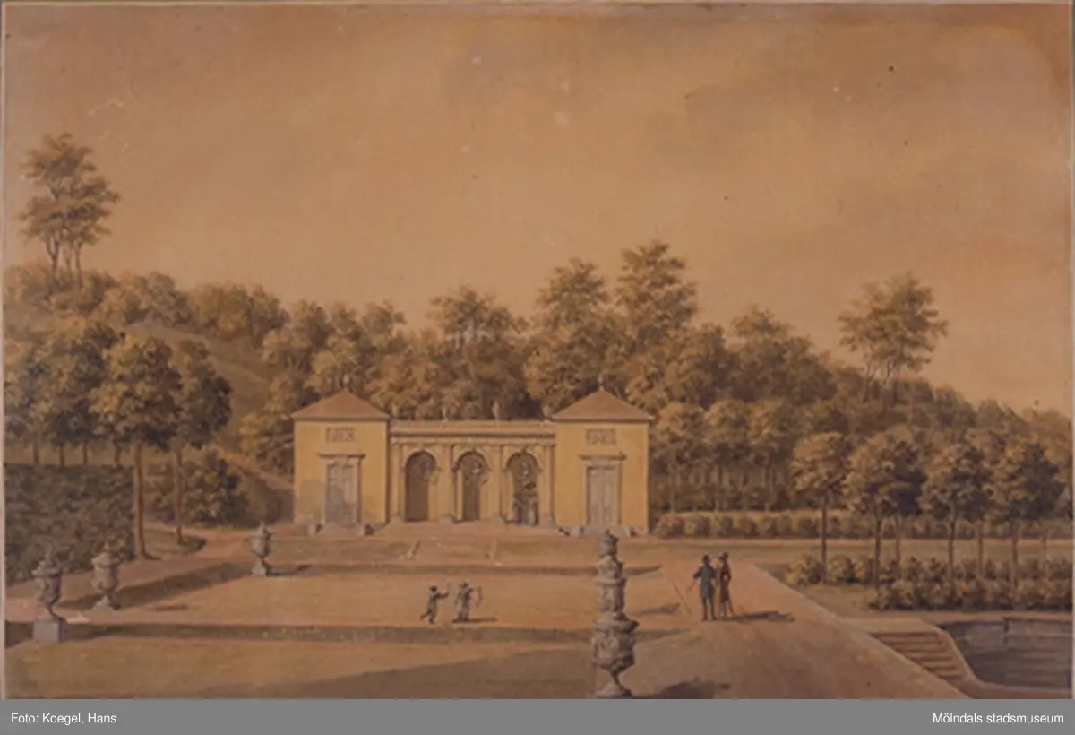 Motiv akvarellmålning Gunnebo ca:1790-1827. av J.F. Weinberg.