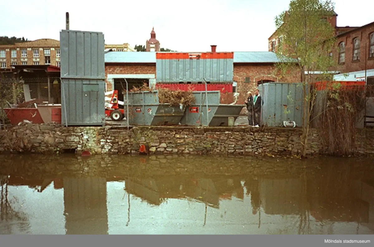 Foto taget utmed Mölndalsån i Krokslätt, år 1993. Krokslätts fabriker skymtar i bakgrunden.