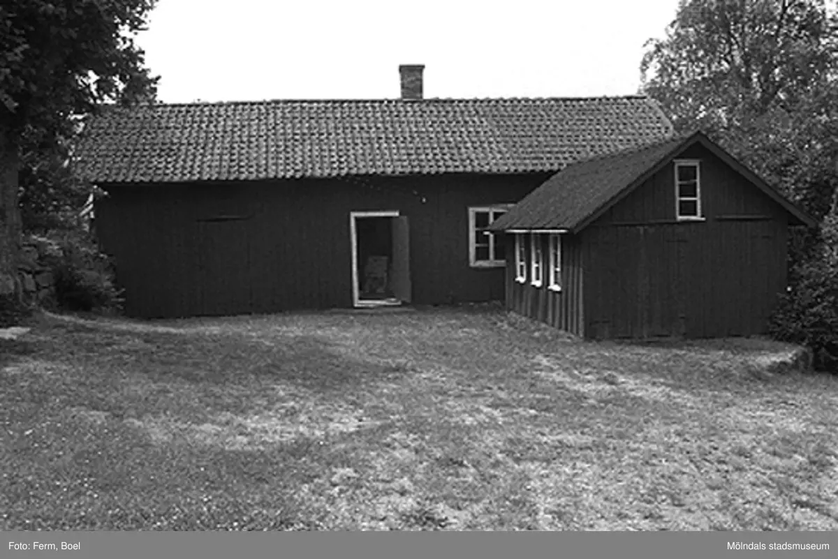 Snickarbod och byggnad för kaffeservering. Hembygdsgården/Börjesgården i Hällesåker, Lindome 1992-06-29.
