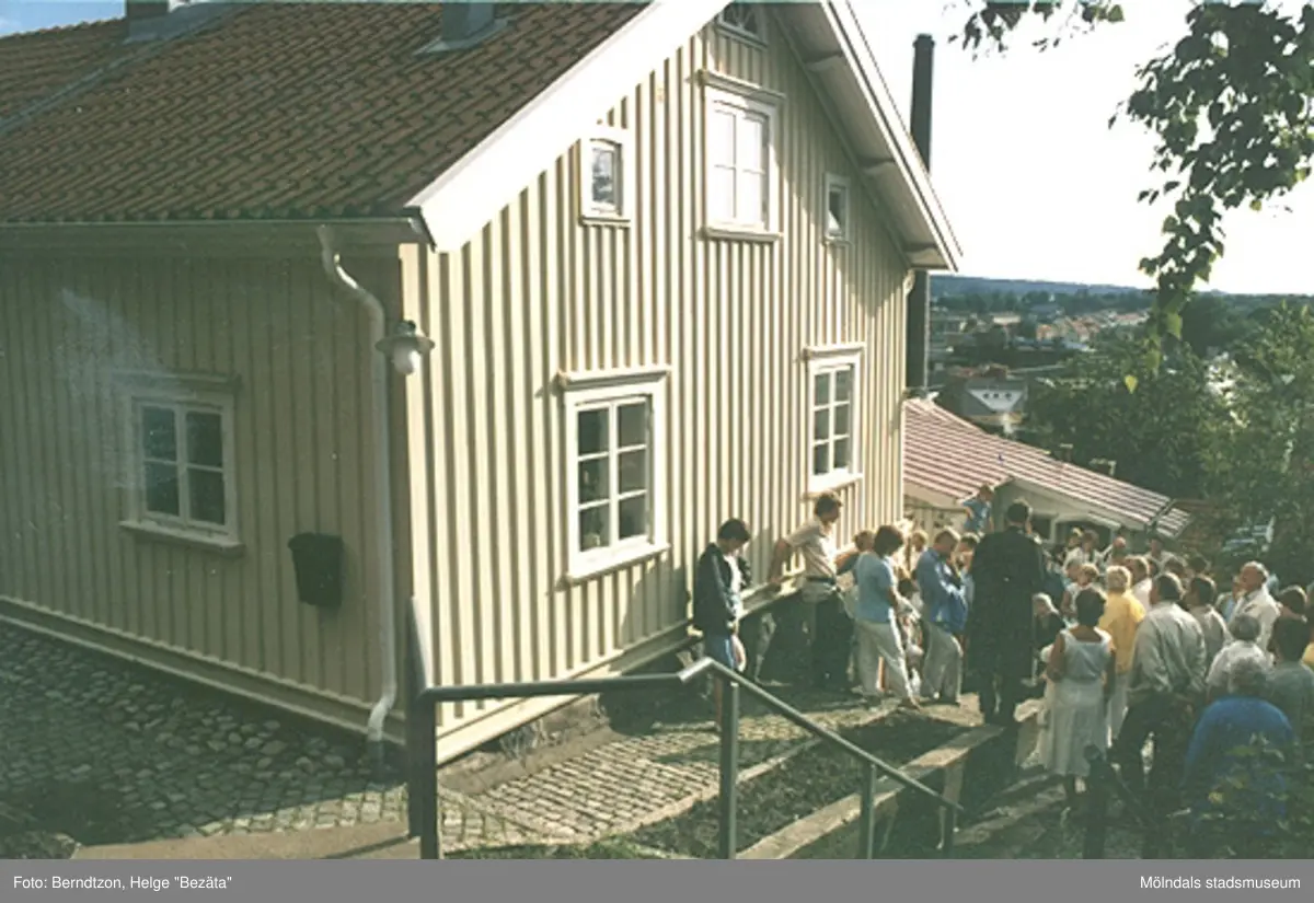 Kvarnbyvandring med Lars Gahrn som guidar turister vid Roten M, augusti 1984.