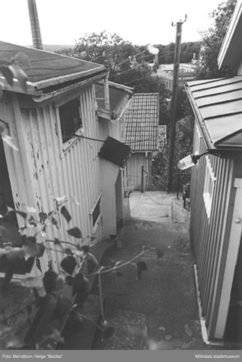 Gränd vid roten M i Mölndals kvarnby, cirka 1984.
