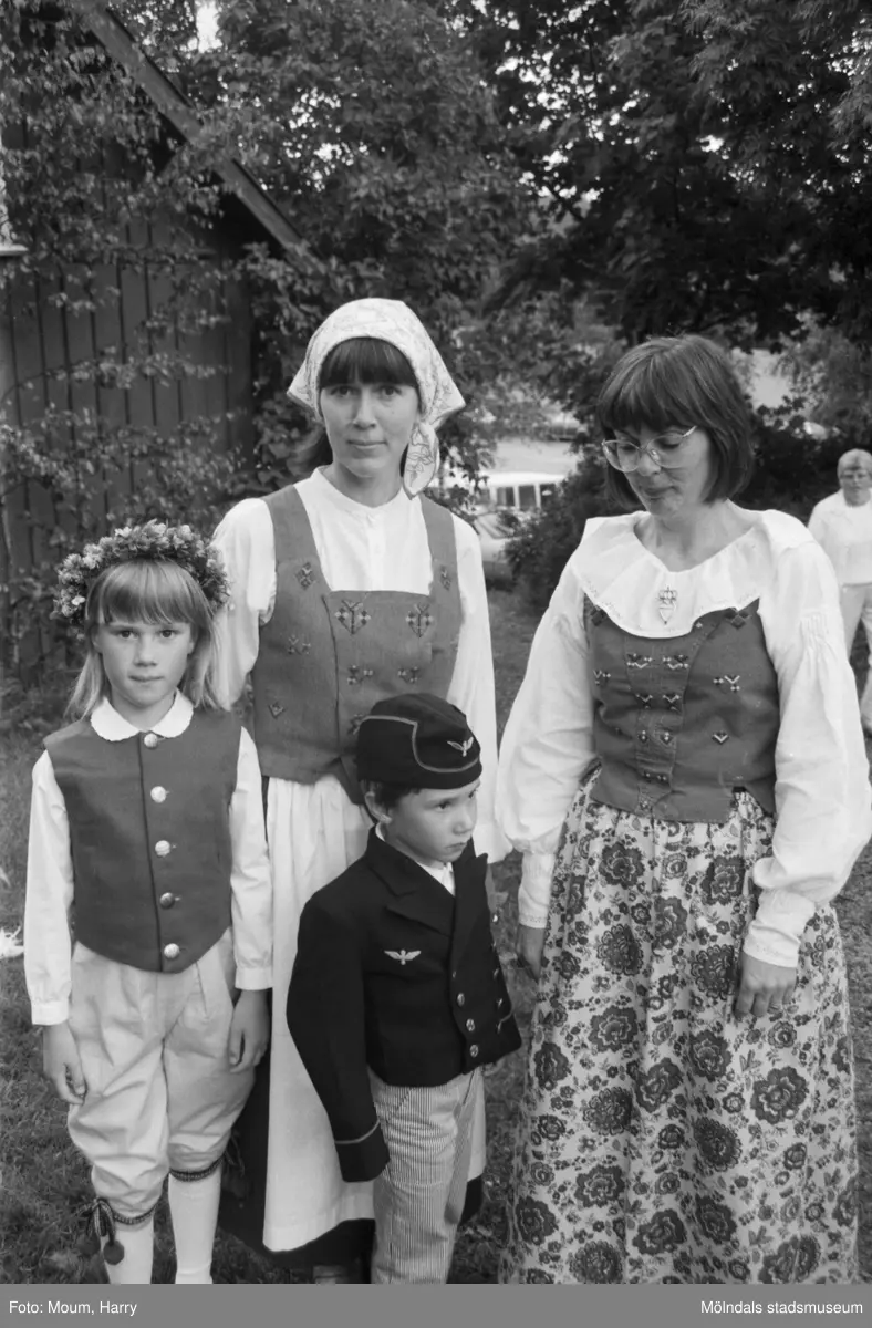 Midsommarfirande på Börjesgården i Hällesåker, år 1984. "Jenny, Ulla och Anders Svensson besökte Börjesgården tillsammans med mormor Lena Brodén."