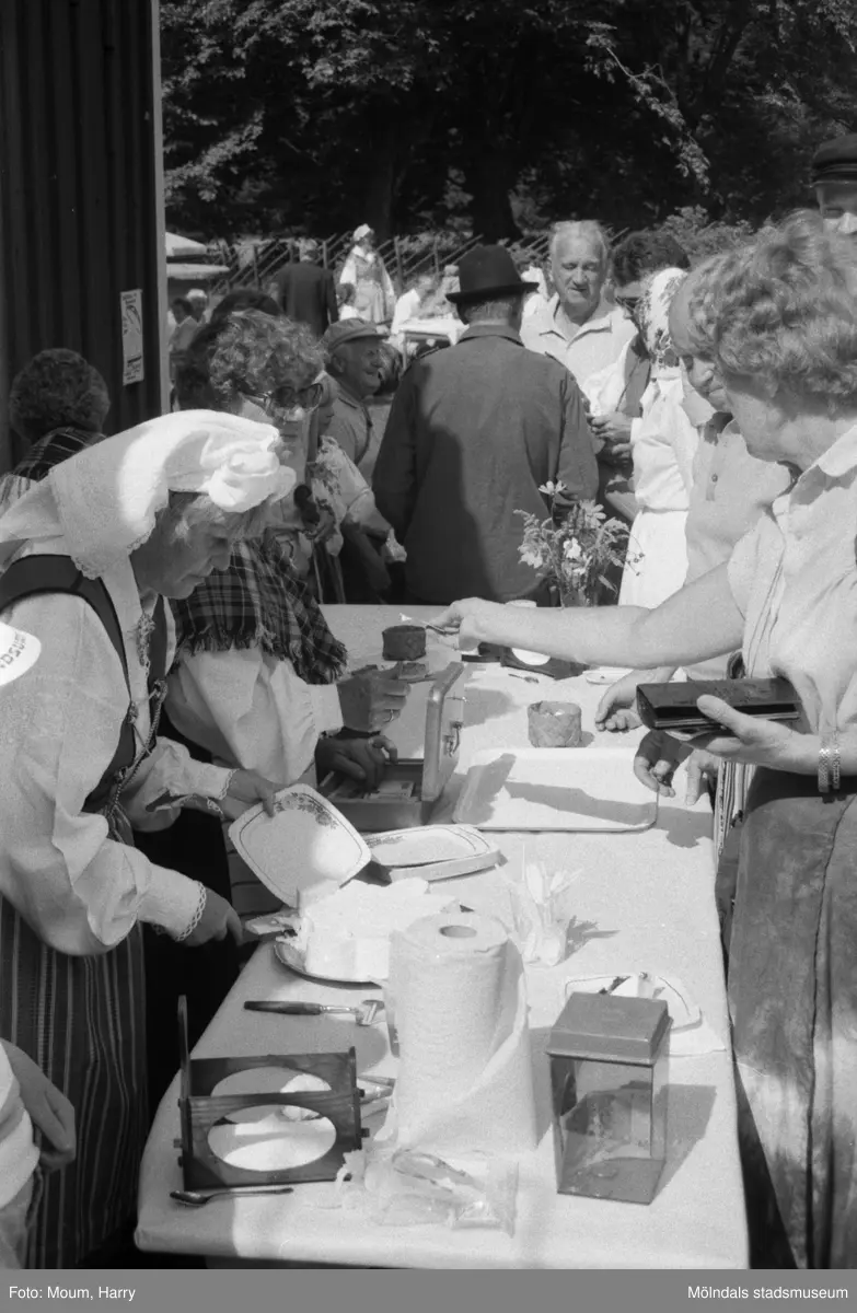 Hembygdsdag på Långåker i Kållered, år 1984. Till vä. Emy Johansson, Kållered som serverar äggost.
