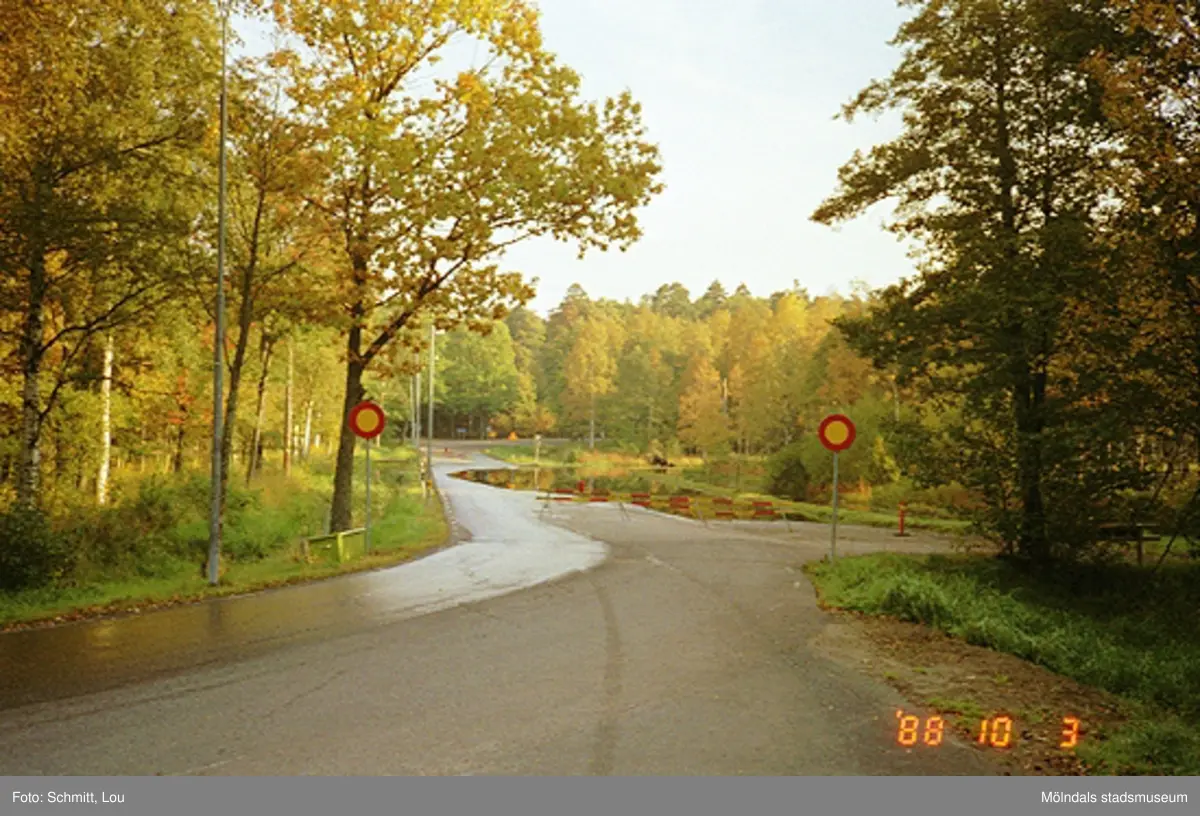 Översvämning på John Halls väg, som går nedanför Gunnebo slott, vid "Runde sten".