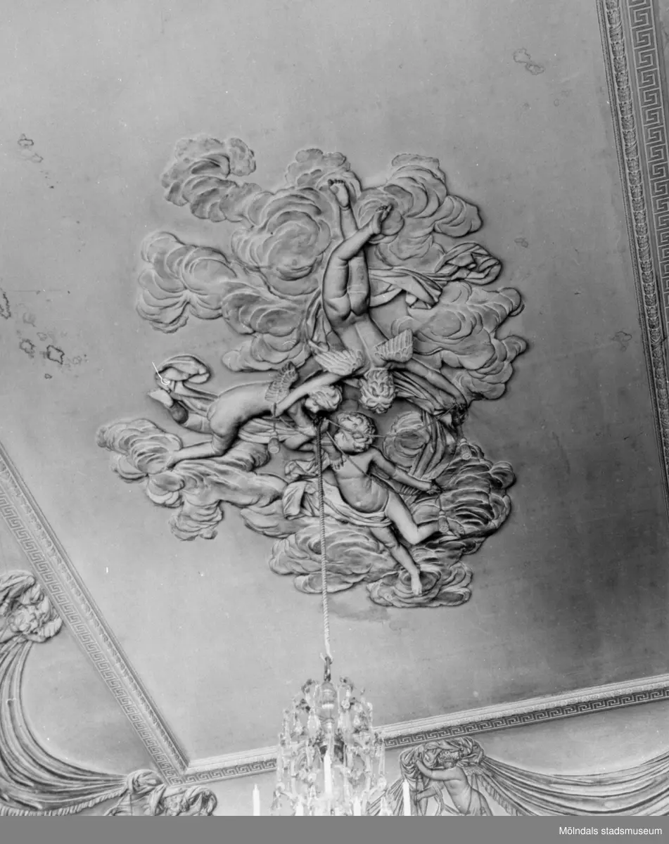 Mittrelief/takstuckatur i stora salongens plafond. Gunnebo slott 1930-tal.