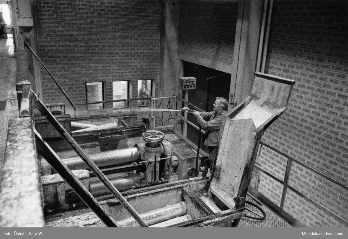 Esko Kiviniemi i arbete i sliperiet på pappersbruket Papyrus i Mölndal, år 1990.