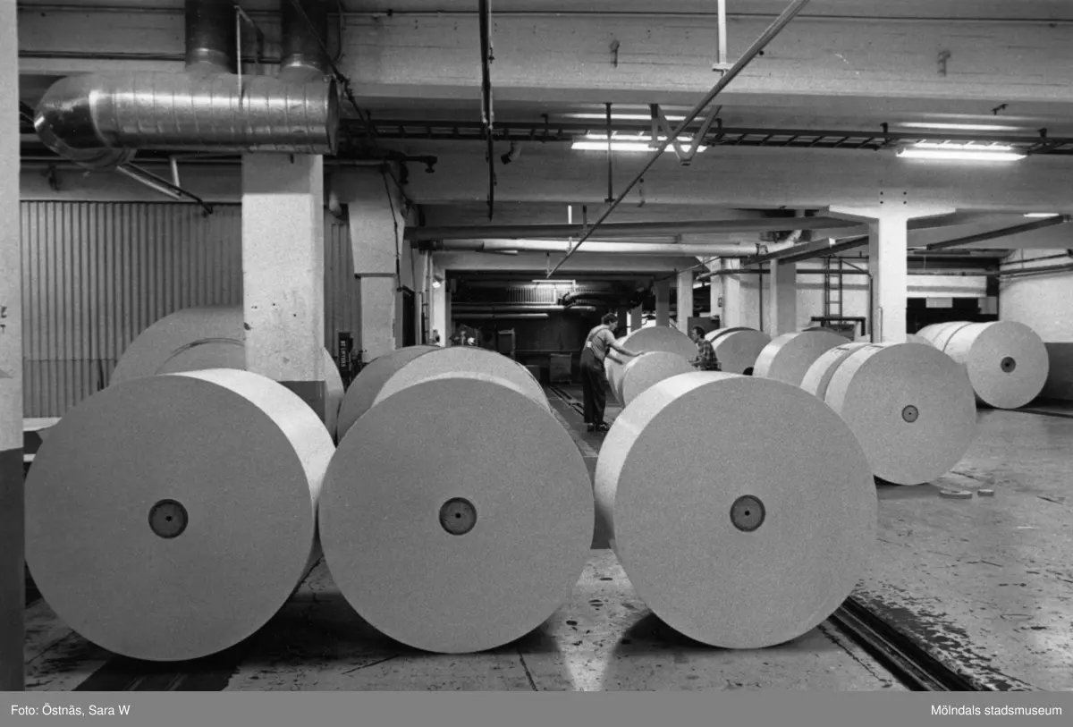 Stefan Roslund och Lennart Landh i arbete på pappersbruket Papyrus i Mölndal, år 1990.