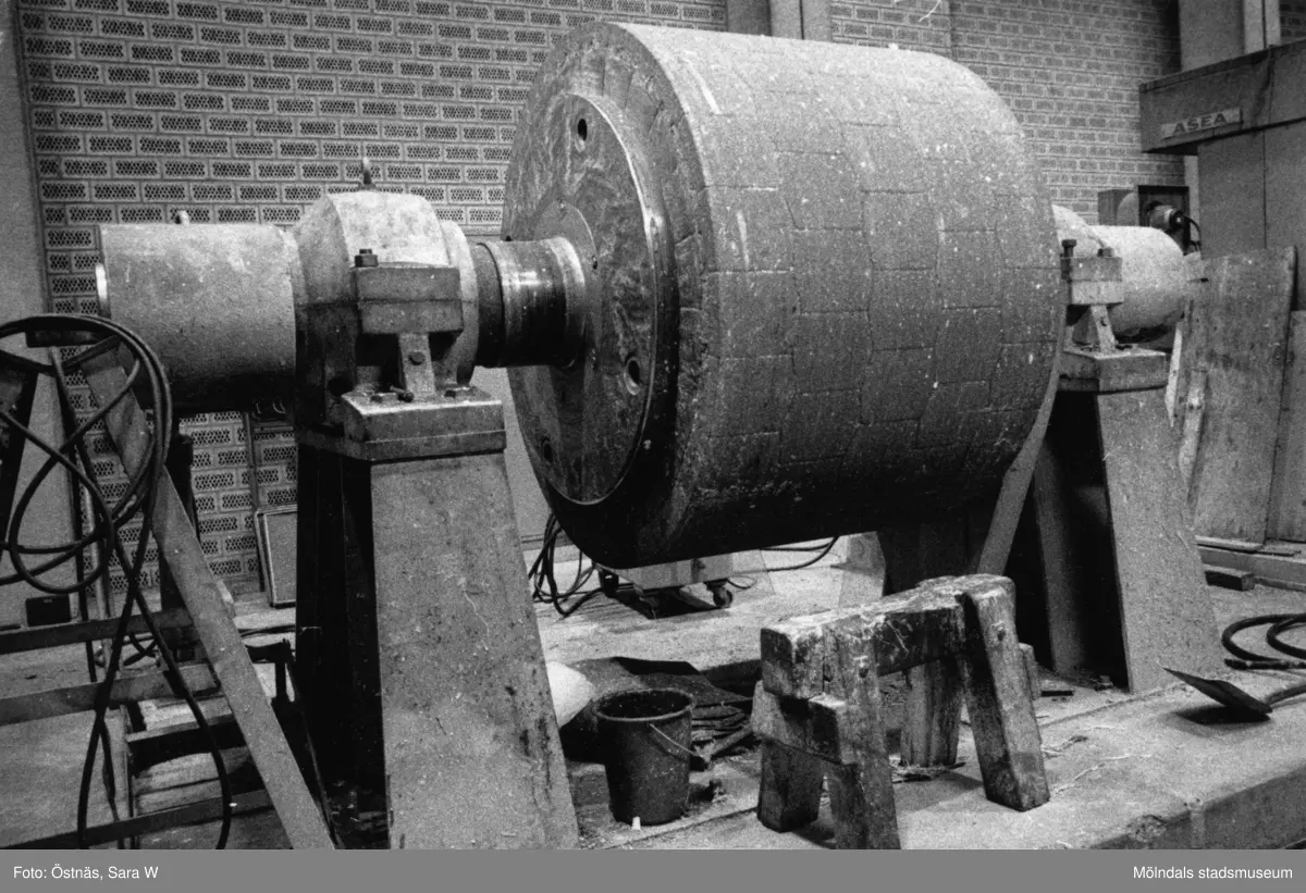 Maskindetalj från sliperiet på pappersbruket Papyrus i Mölndal, år 1990.