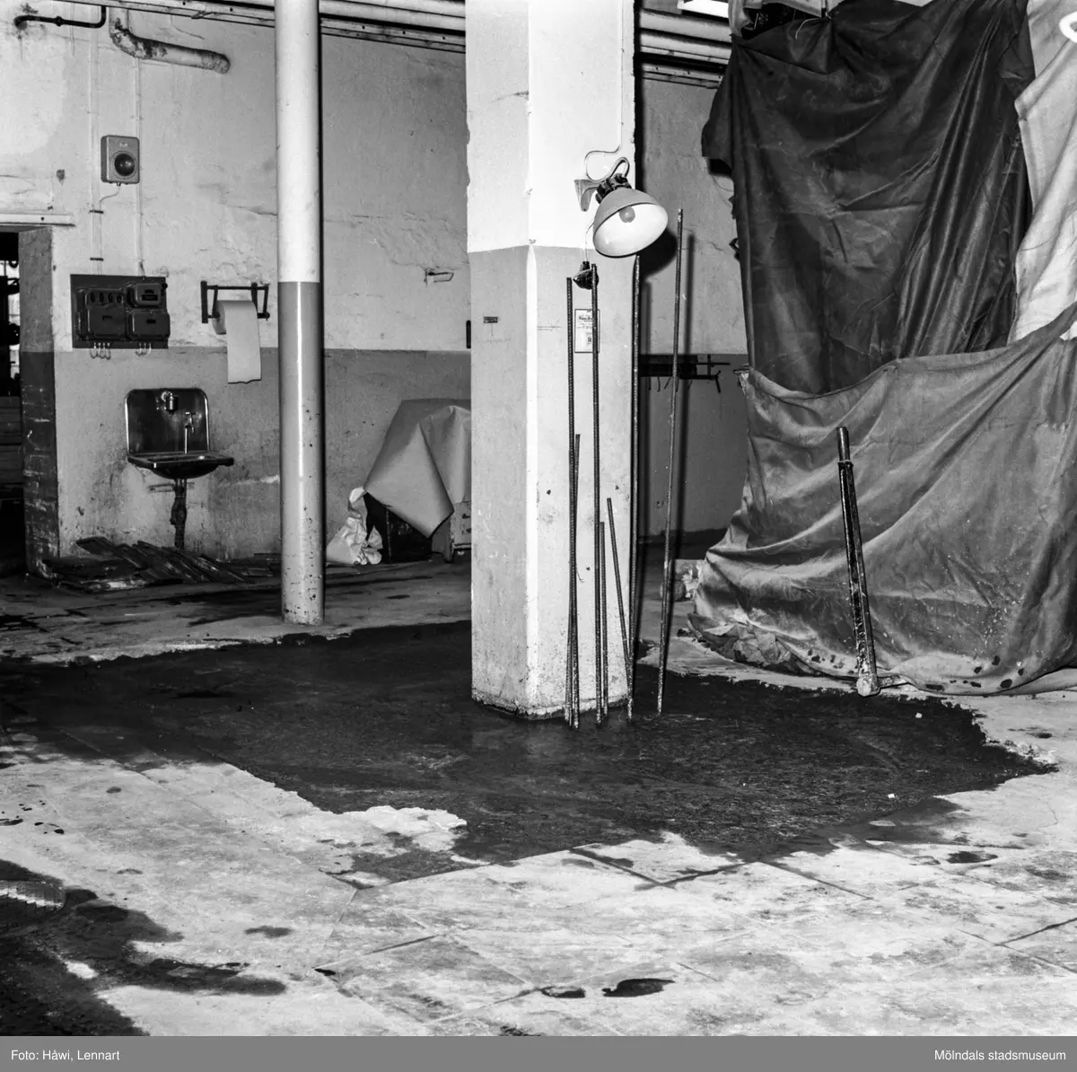 Titel: Byggnad 19 på pappersbruket Papyrus i Mölndal, 16/7 1966. Förstärkning av bjälklag genom megapålning.
