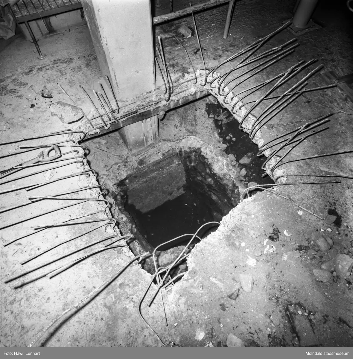 Titel: Byggnad 19 på pappersbruket Papyrus i Mölndal, 16/7 1966. Förstärkning av bjälklag genom megapålning.