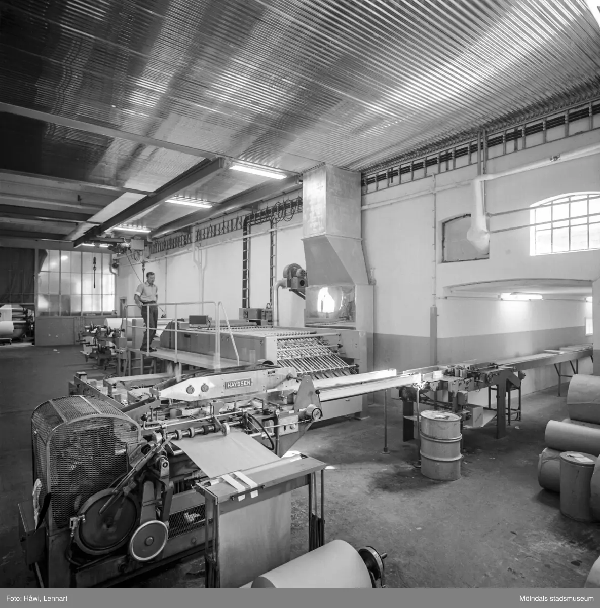 Man i arbete vid Lenax-maskinen på pappersbruket Papyrus i Mölndal, 8/9 1967.