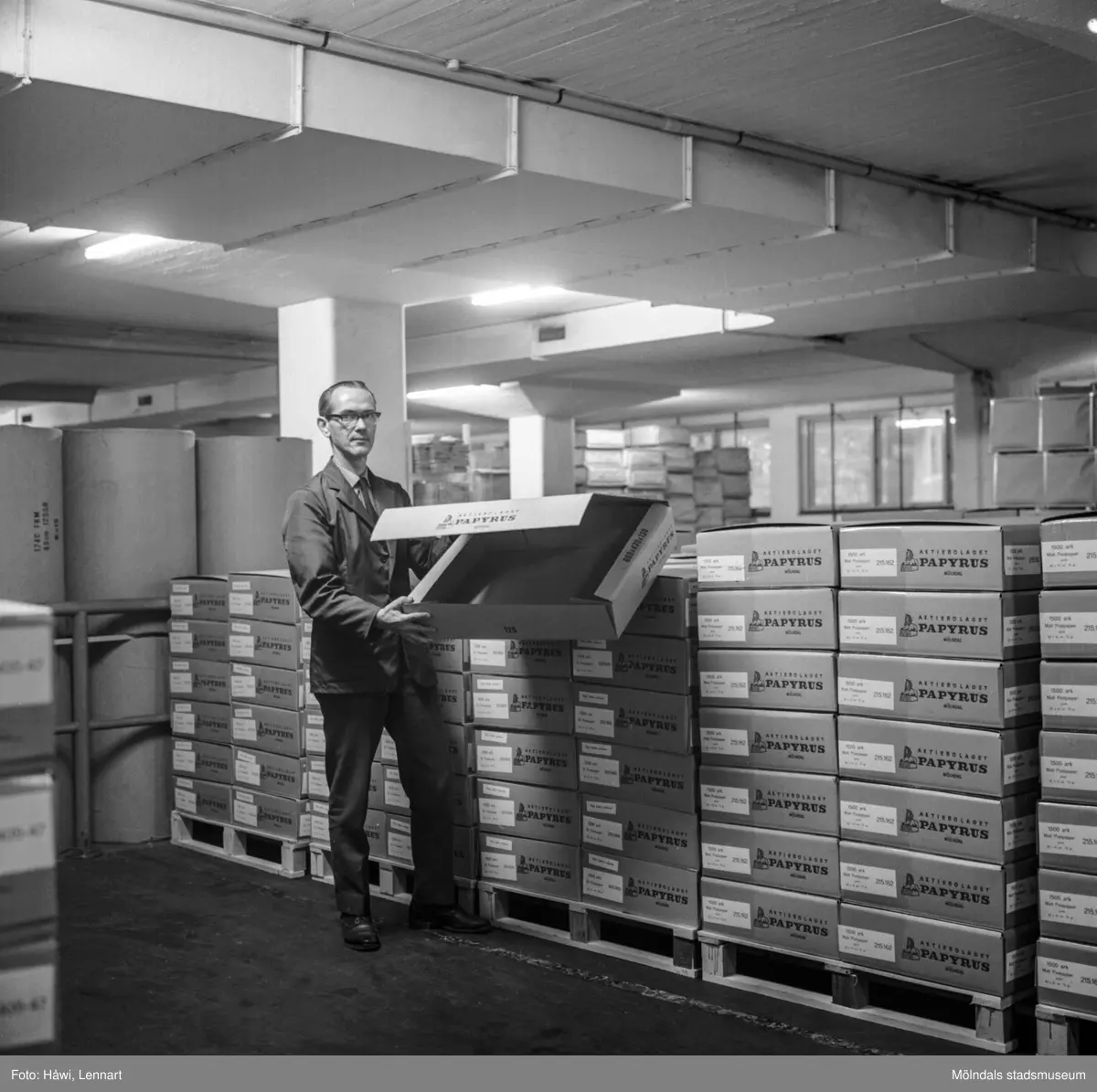 Wellpappkartong, typ Torsten Larsson på pappersbruket Papyrus i Mölndal, 17/10 1969.