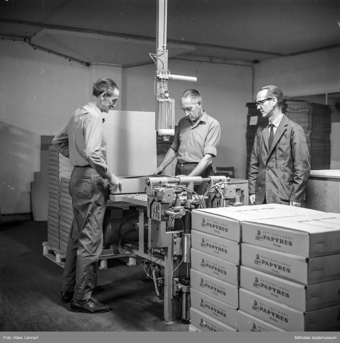 Packning av wellpappkartonger på pappersbruket Papyrus i Mölndal, 17/10 1969.