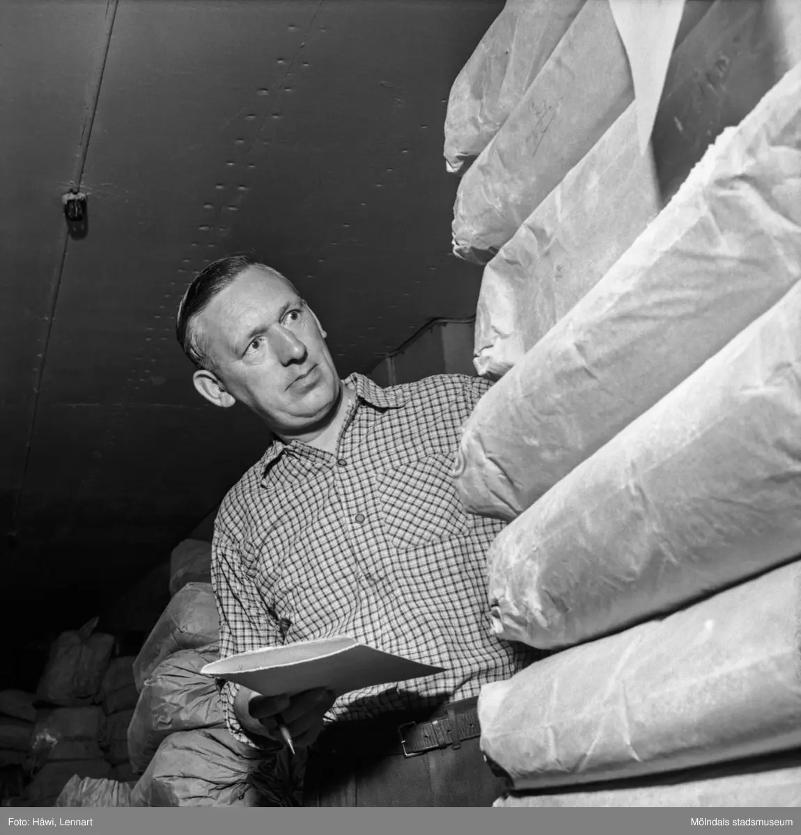 Reportage från pappersbruket Papyrus pressvisning i Mölndal, 29/8 1955. En man i arbete på Papyrus.