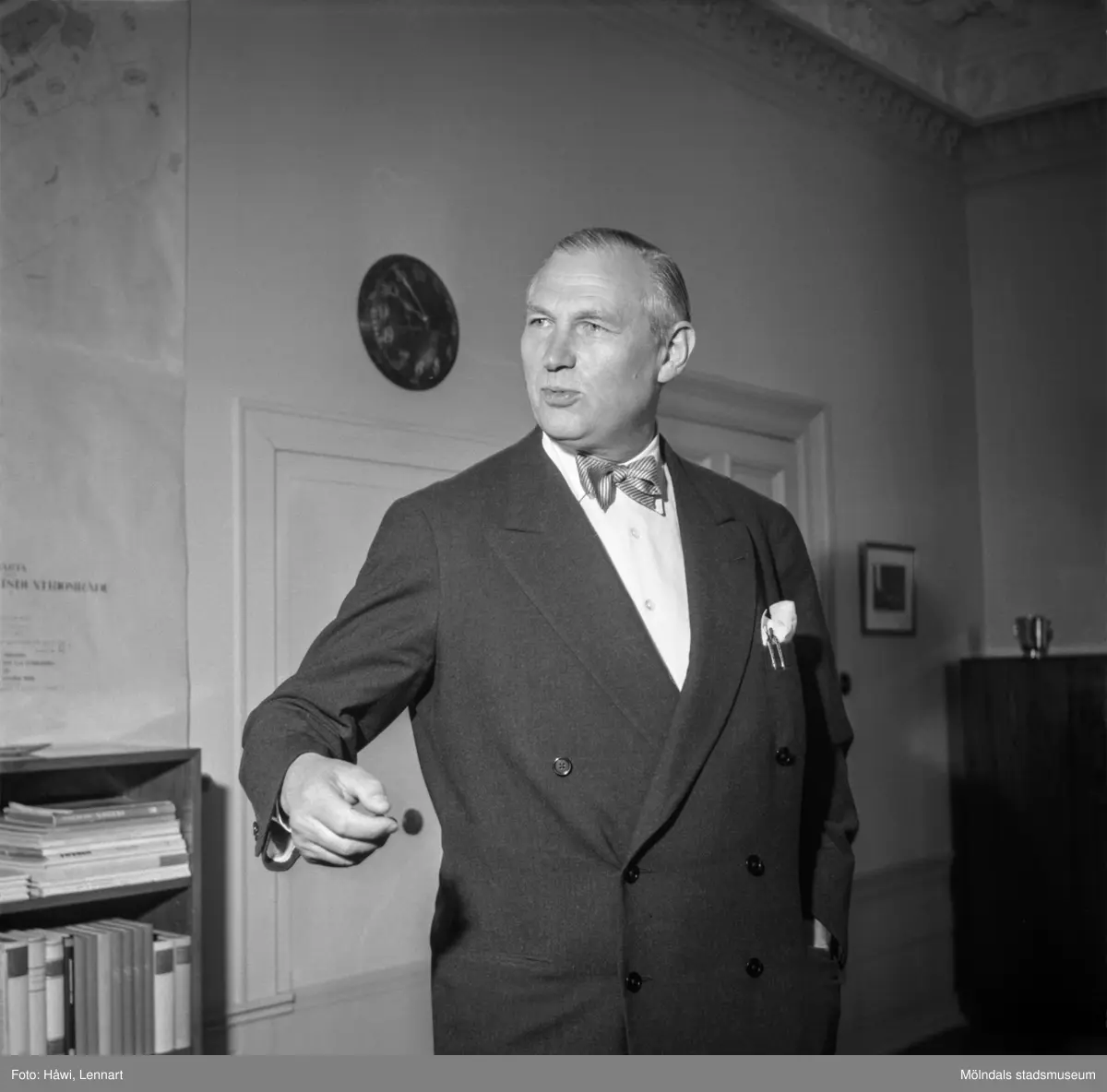 Titel: Bankdirektör Marcus Wallenberg på pappersbruket Papyrus i Mölndal, 15/6 1955.