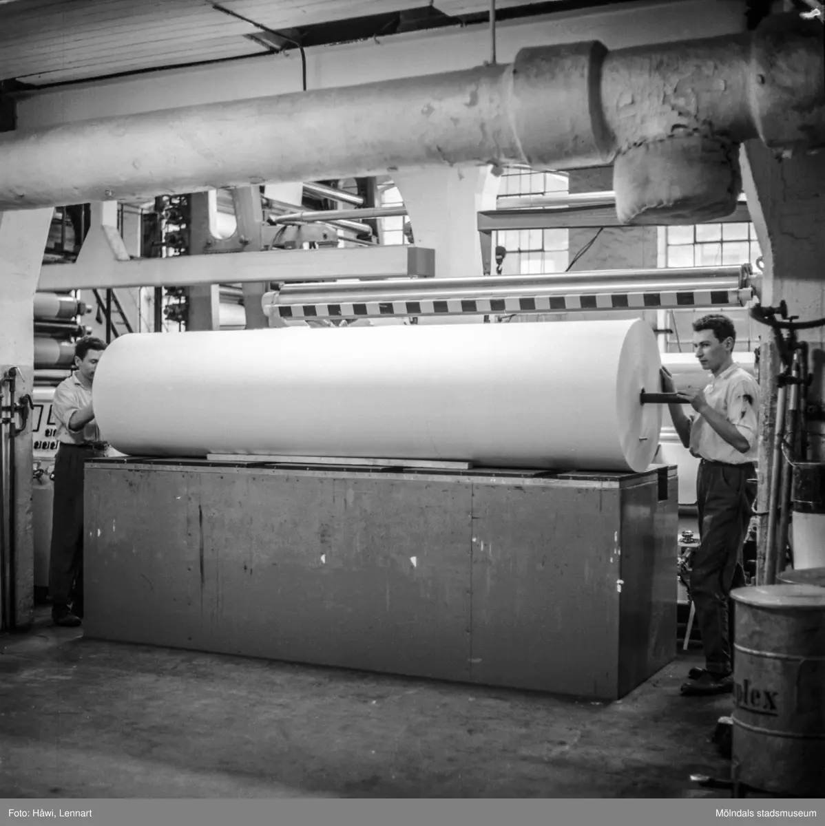 Män i arbete vid rullstol PM12 på pappersbruket Papyrus i Mölndal, 5/12 1959.