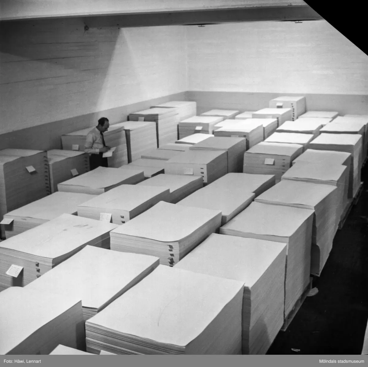 Man i arbete vid kartongfärdigställningen på pappersbruket Papyrus i Mölndal, 1/2 1960. Fotografi för årsberättelsen 1959.