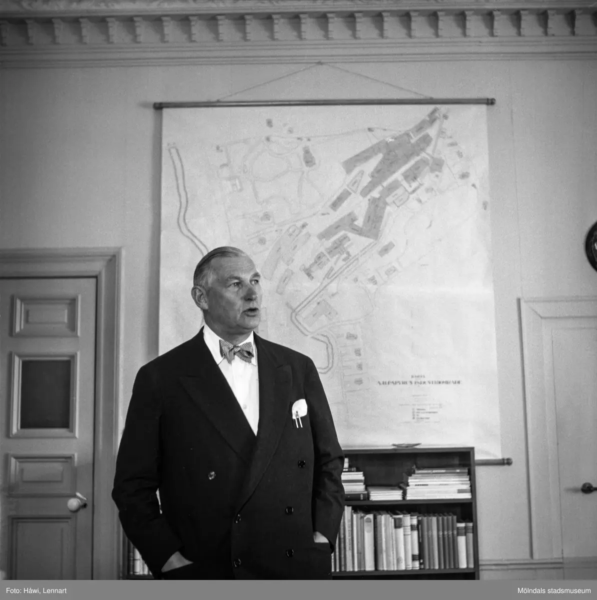 Titel: Bankdirektör Marcus Wallenberg på pappersbruket Papyrus i Mölndal, 15/6 1955.