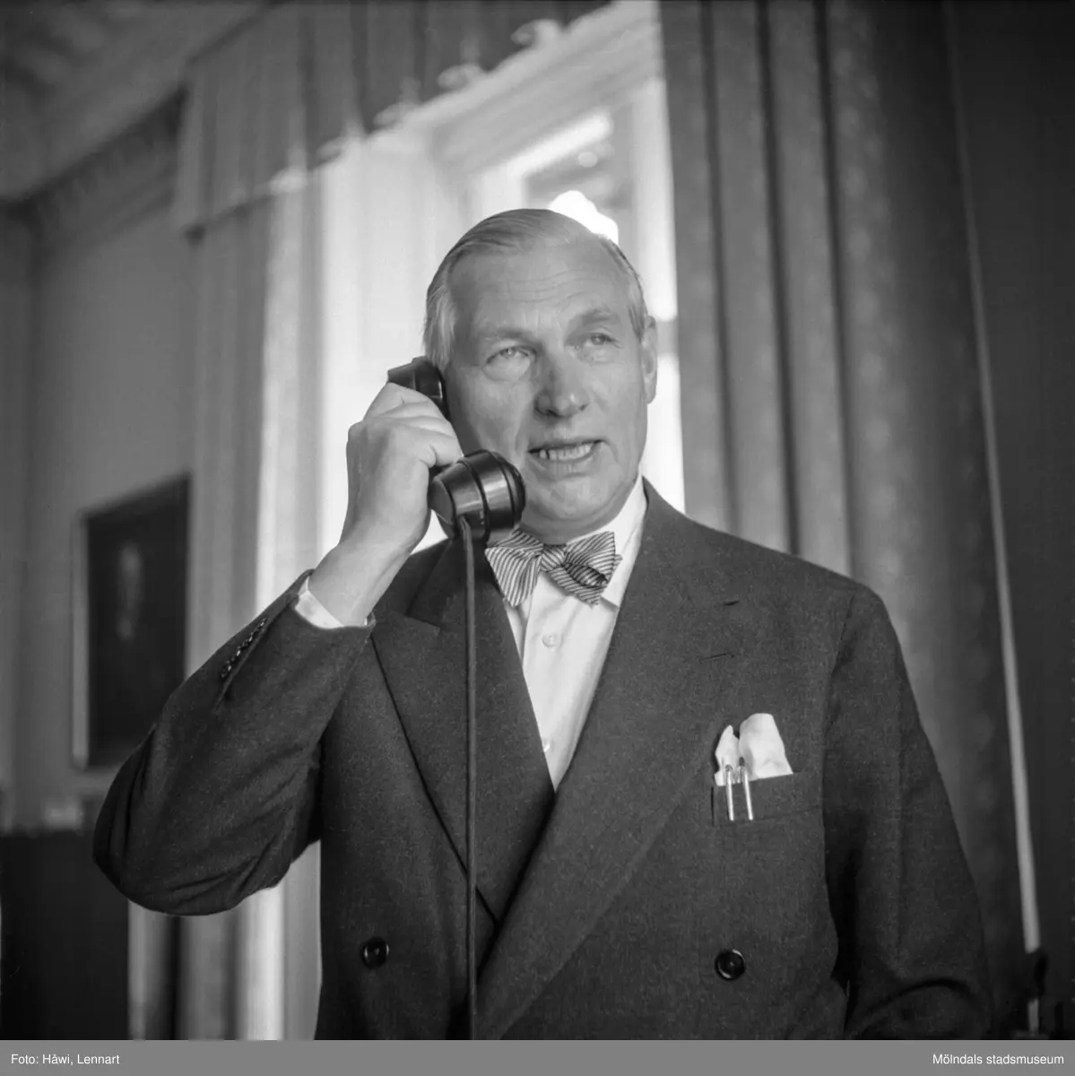Titel: Bankdirektör Marcus Wallenberg på pappersbruket Papyrus i Mölndal, 15/6 1955.