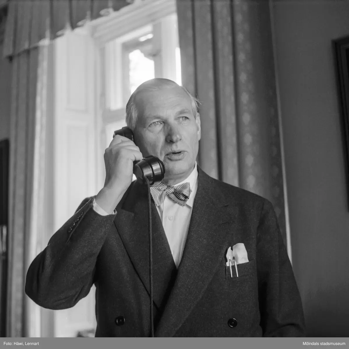 Titel: Bankdirektör Marcus Wallenberg på pappersbruket Papyrus i Mölndal, 15/6 1955.