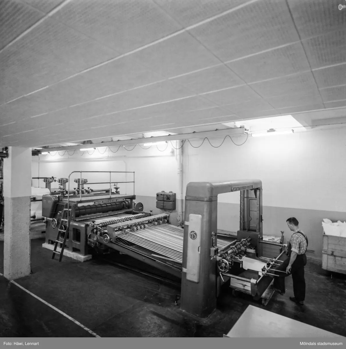 Man i arbete vid klipp nr 13 på pappersbruket Papyrus i Mölndal, 14/8 1961.
