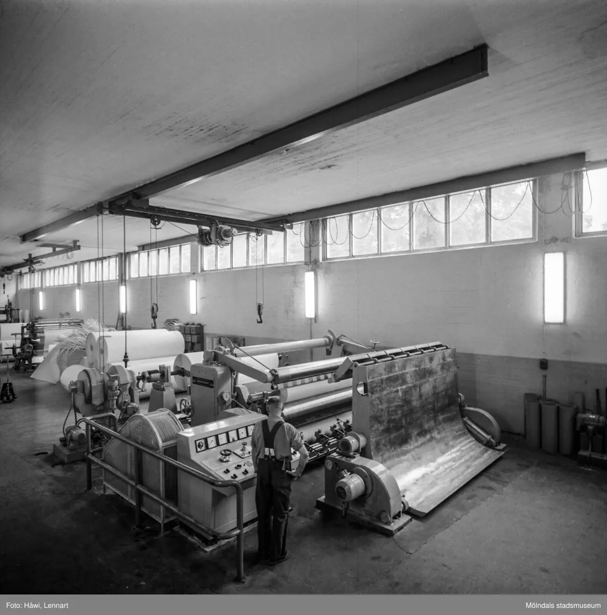 Man i arbete vid rullstol nr 10, kartong, på pappersbruket Papyrus i Mölndal, 30/8 1962.