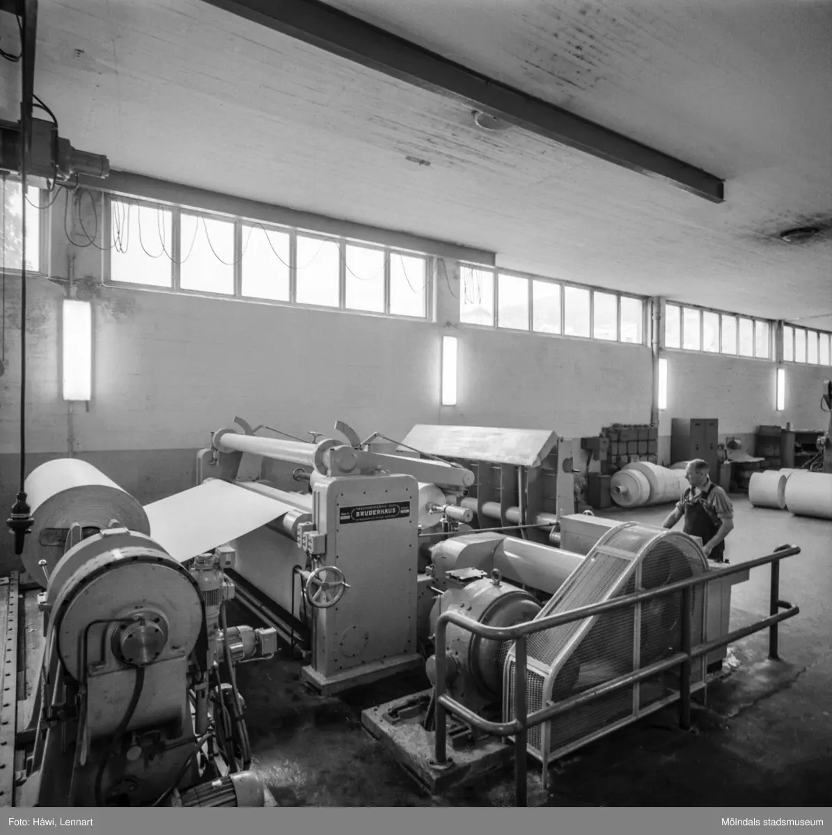 Man i arbete vid rullstol nr 10, kartong, på pappersbruket Papyrus i Mölndal, 30/8 1962.