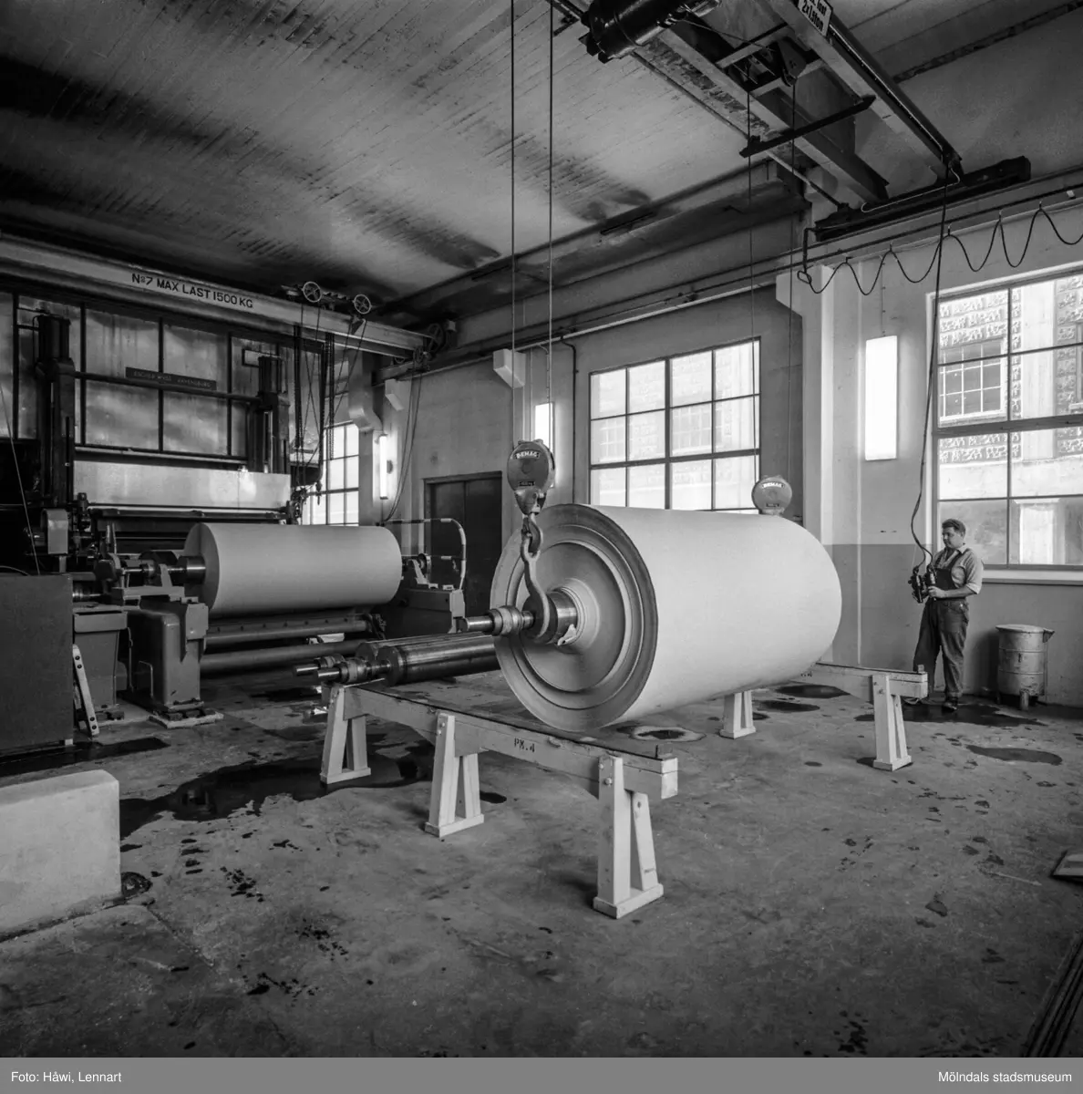 Man i arbete vid PM4, upprullning, på pappersbruket Papyrus i Mölndal, 17/9 1963.