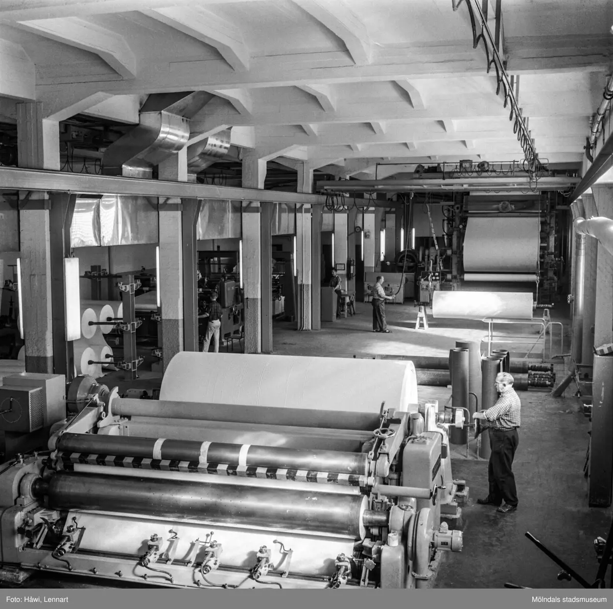 Man i arbete vid PM12 färdigställningsavdelning på pappersbruket Papyrus i Mölndal, 30/9 1963. PM12 rullstol, glätt nr 3, klipp nr 12.