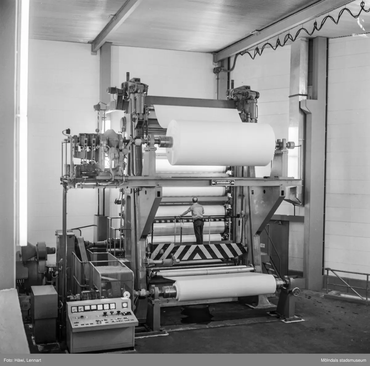 Man i arbete vid glätt nr 5 på pappersbruket Papyrus i Mölndal, 8/9 1965.