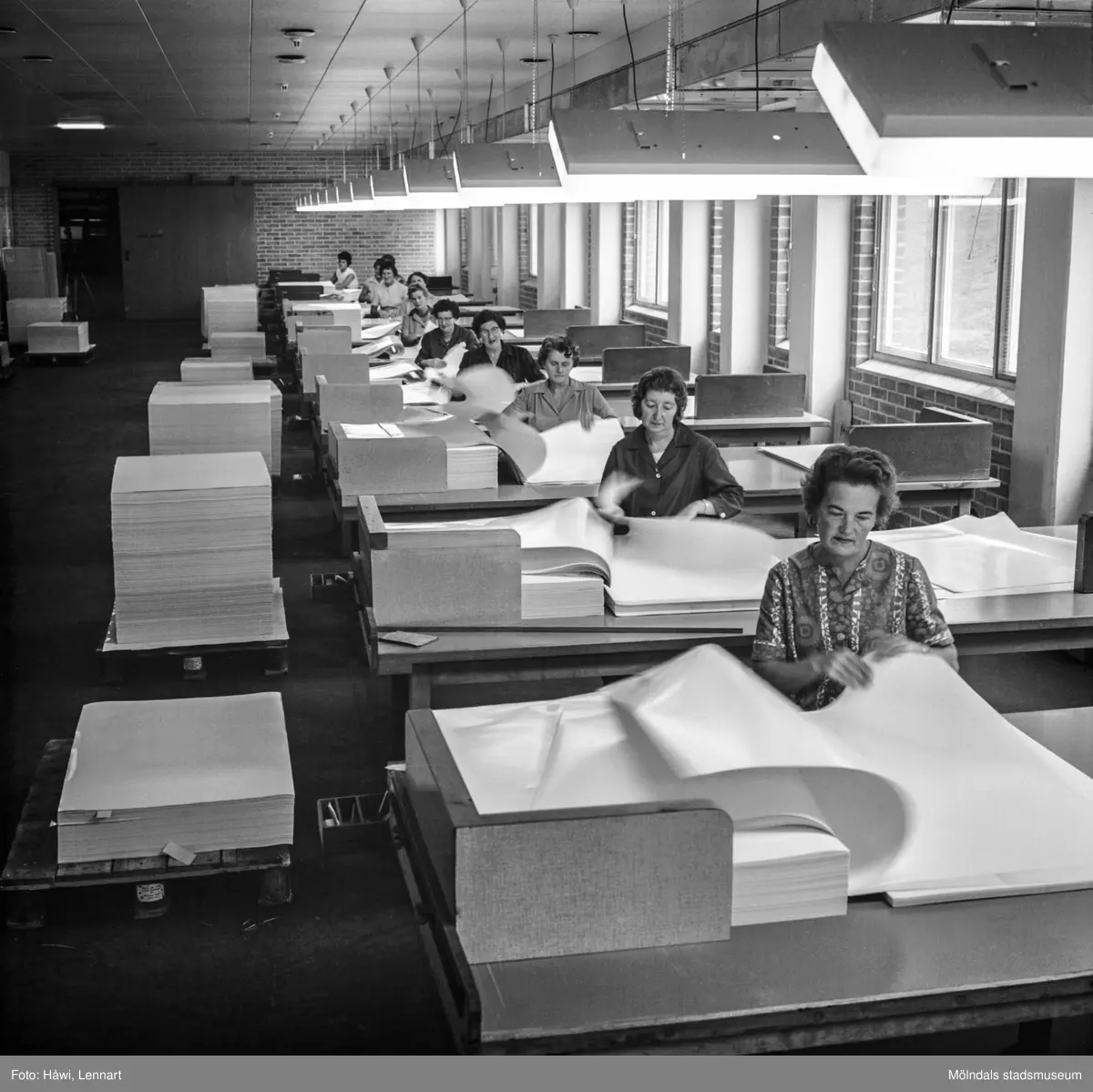 Kvinnor i arbete i sortersalen på pappersbruket Papyrus i Mölndal, 9/9 1964.