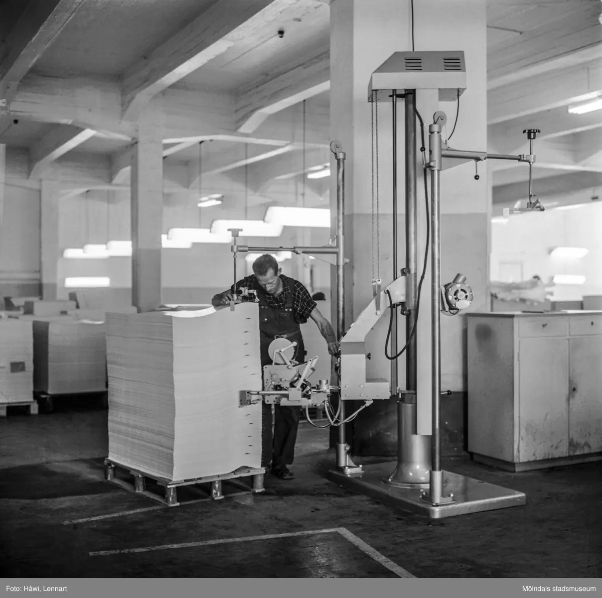 Man i arbete vid räknemaskin på pappersbruket Papyrus i Mölndal, 30/9 1963.
