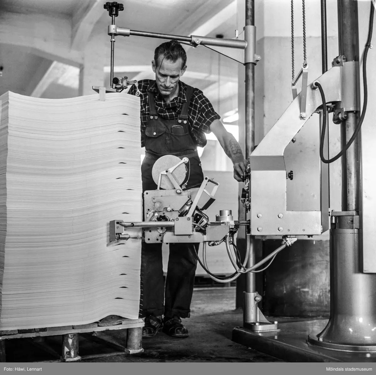 Man i arbete vid räknemaskin på pappersbruket Papyrus i Mölndal, 30/9 1963.