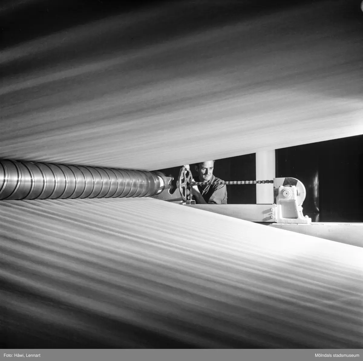 Titel: Man i arbete vid PM5 på pappersbruket Papyrus i Mölndal, 29/11 1965.