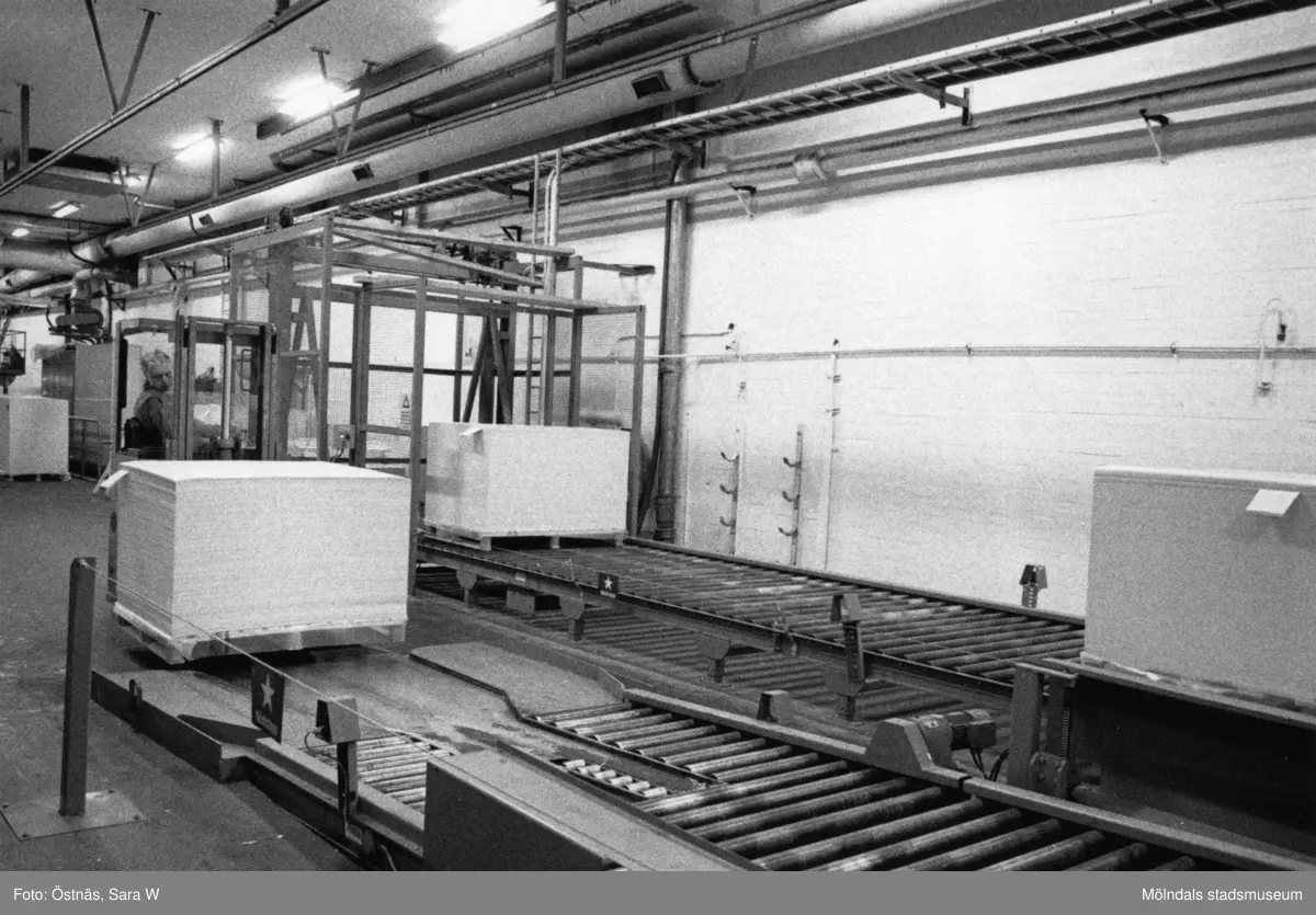 Transport av pall med truck på pappersbruket Papyrus i Mölndal, år 1990.