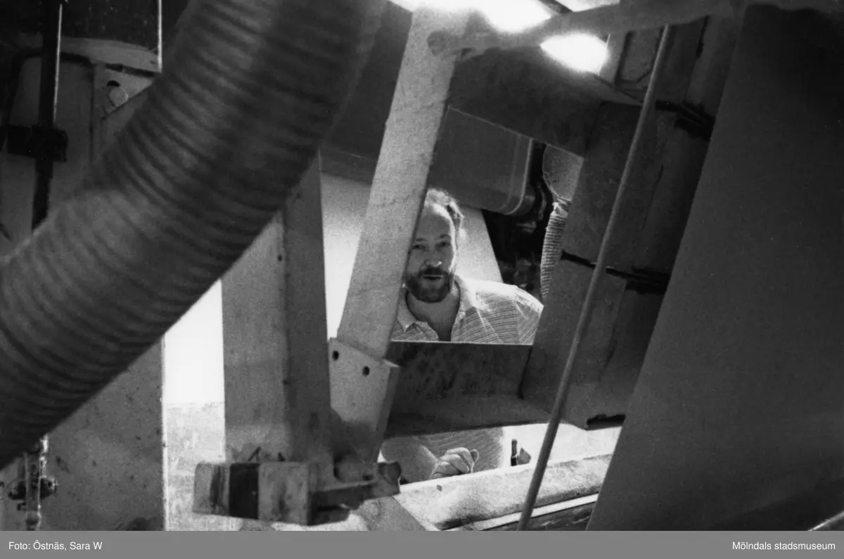 Juris Kuvalds i arbete vid maskin på pappersbruket Papyrus i Mölndal, år 1990.