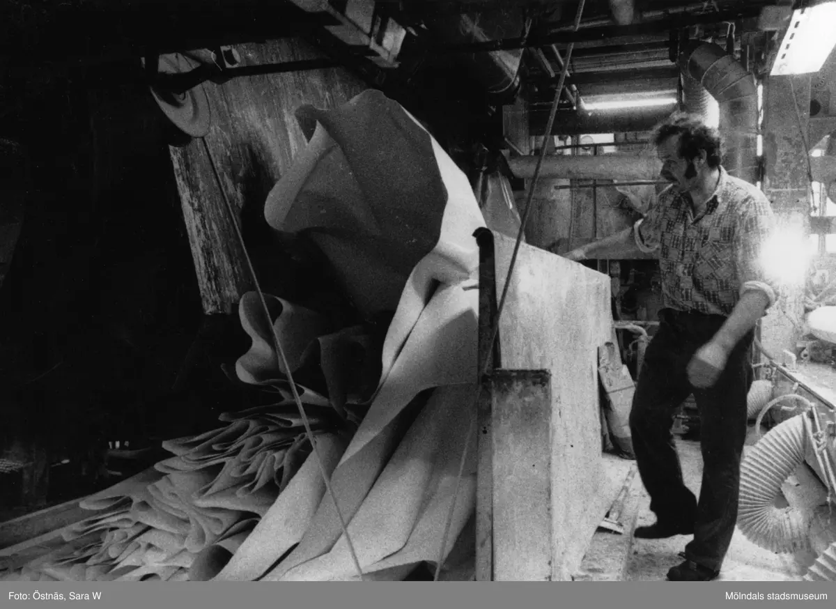 Aarno Aspbäck i arbete vid banbrott på pappersbruket Papyrus i Mölndal, år 1990.